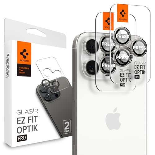 Spigen Glas.tR EZ Fit Optik Pro Tempered Glass Camera Lens Protector for iPhone 14/15/16/17 Pro Max, iPhone 14/15/16/17 Pro, L-Series Edition - 2 Pack