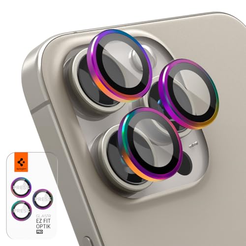 Spigen Glas.tR EZ Fit Optik Pro Protection Camera for iPhone 15 Pro/Pro Max, iPhone 14 Pro/Pro Max, 1 Piece, Rainbow, Individual Protection, Installation Kit