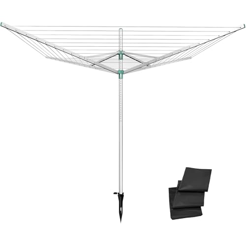 JIANFA Rotary Washing Line, 4 Arm 50M Folding Clothes Airer Outdoor with Ground Spike & Cover Heavy Duty Adjustable Height Clothes Drying Rack for Laundry Outdoor Garden