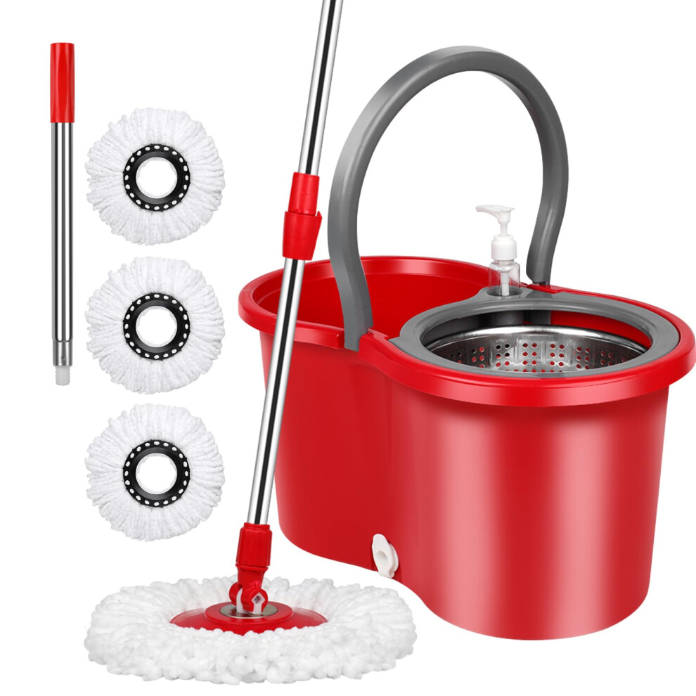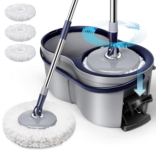 Masthome Spin Mop and Bucket Sets,Floor Mop and Bucket with Wringer,360° Spinning Microfibre Mop with Stainless Steel Handle,Flat Mop with 3 Reusable Mop Heads for Hardwood Tiles Laminate Vinyl