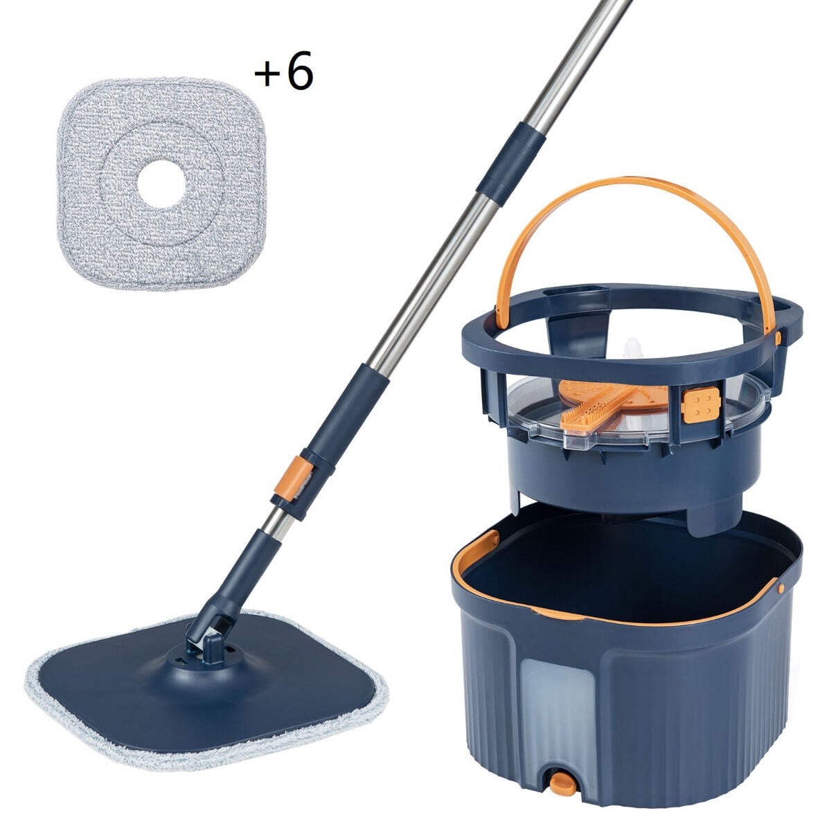 Spin Mop and Bucket Set Square with 8 Microfiber Mop Pads-Navy