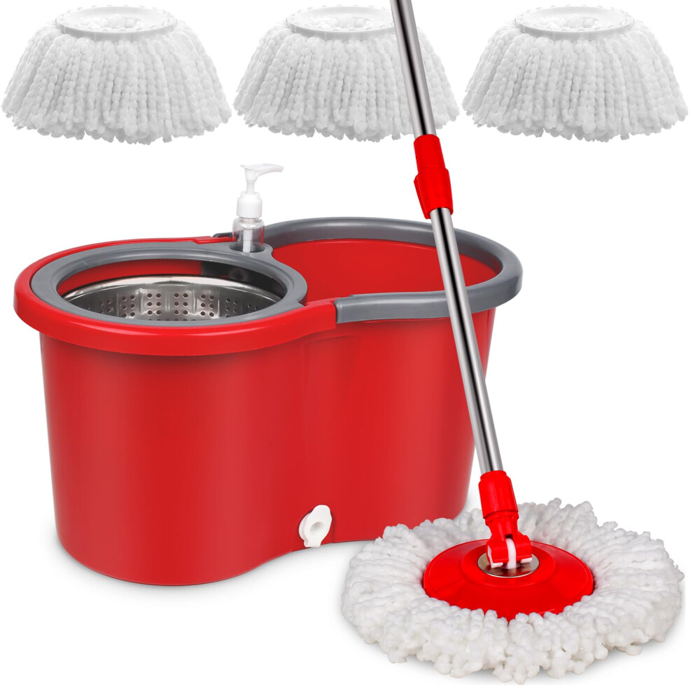 Spin Mop and Bucket Set 360 Spin Mop and Bucket with Wringer Set and 3 Microfiber Mop Refills Stainless Steel 61"" Extended Handle Spinnin