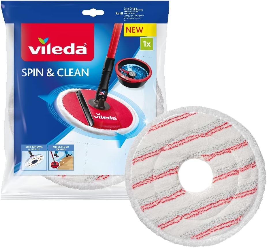 Vileda Spin and Clean Mop Refill, White, 1 Count (Pack of 1)