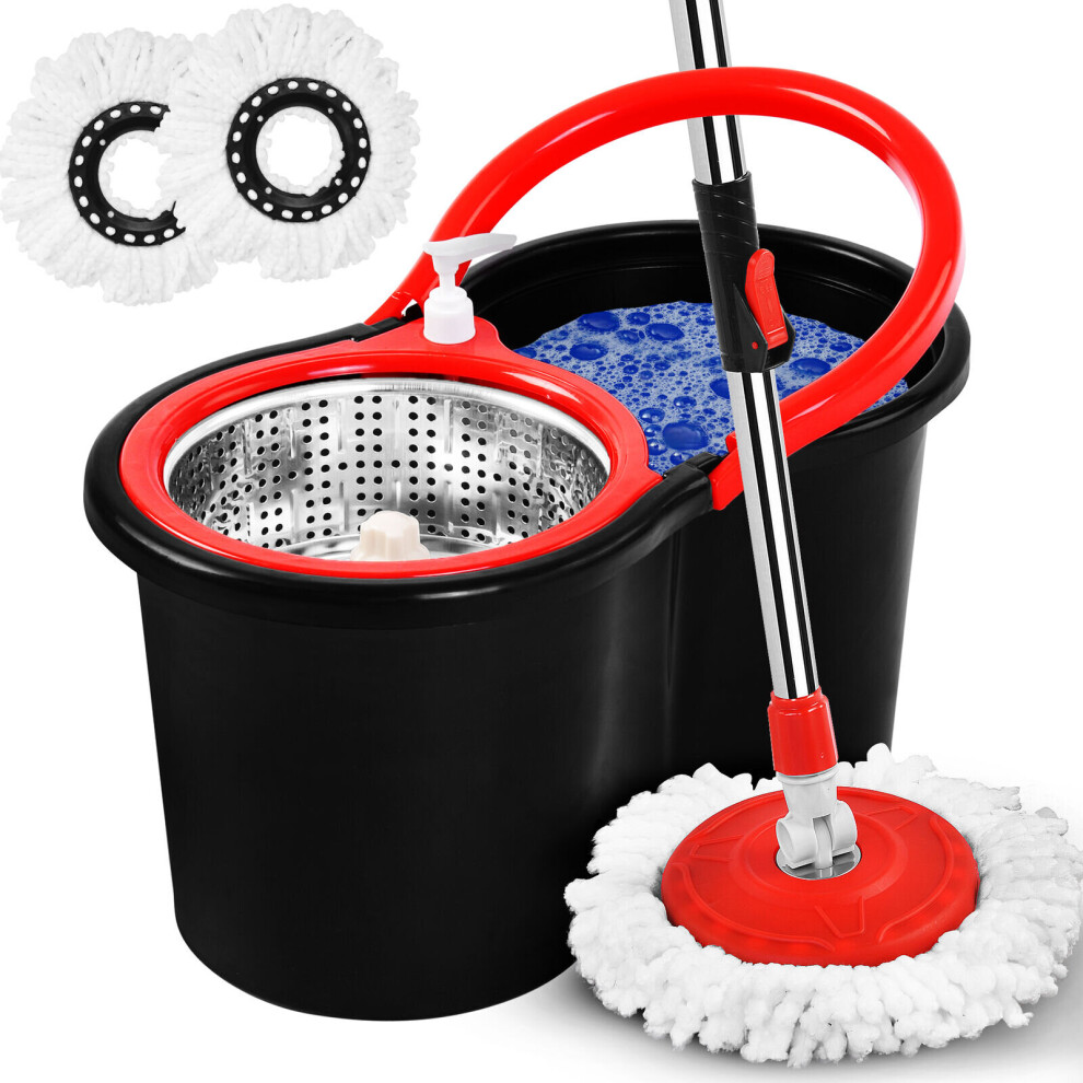 Spin Mop and Bucket Set 360 Spin Wringer Mop for Cleaning Floor Long Handle Extendable Stainless Steel Rotating Mop Bucket with 2 Super Absorbent Mic