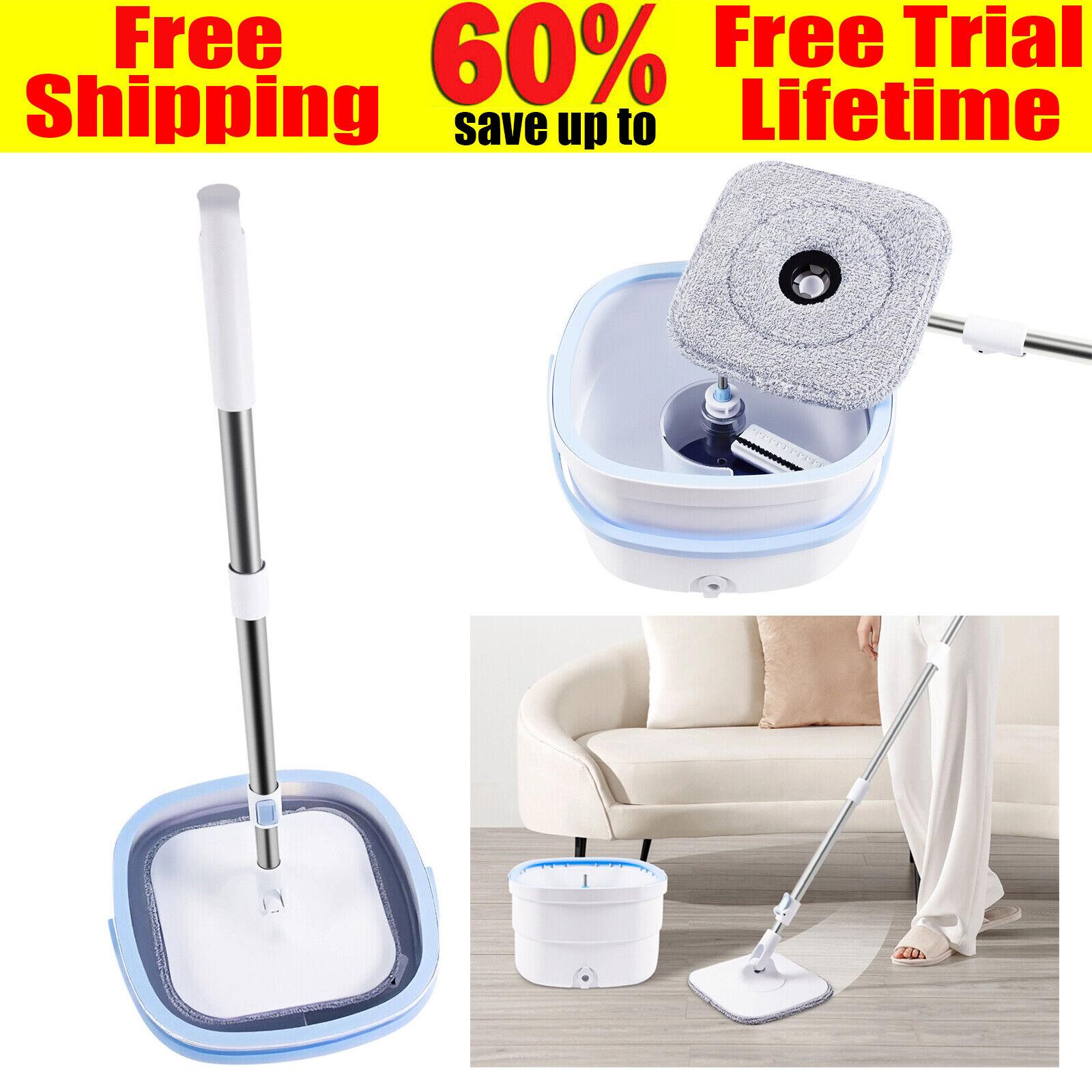 Spin Mop and Bucket Set System Floor Wooden Laminating Tiles Glass Wall Cleaning