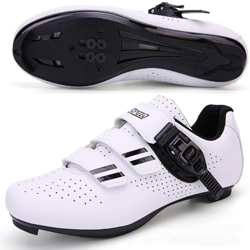 Cycling Shoes Mens Womens Comfortable Non-Slip Road Bike Shoes Professional Cycle Trainers Shoe Breathable Unisex Spin Bicycle Sneaker for Outdoor & Indoor-White-1||Numeric_3
