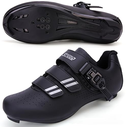 Hixingo Road Cycling Shoes Mens Womens with Look Delta Bike Cleats Set, Non-Slip Road Bikes Shoes Unisex Outdoor Cycling Shoes Spin Bicycle Shoes, 3.5 UK to 12 UK Black