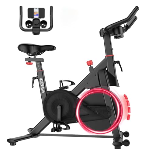 Superun Exercise Bike for Home Use Spin Bike with Adjustable Magnetic Resistance, Stationary Bike with LCD Display and APP, 136 kg Weight Capacity
