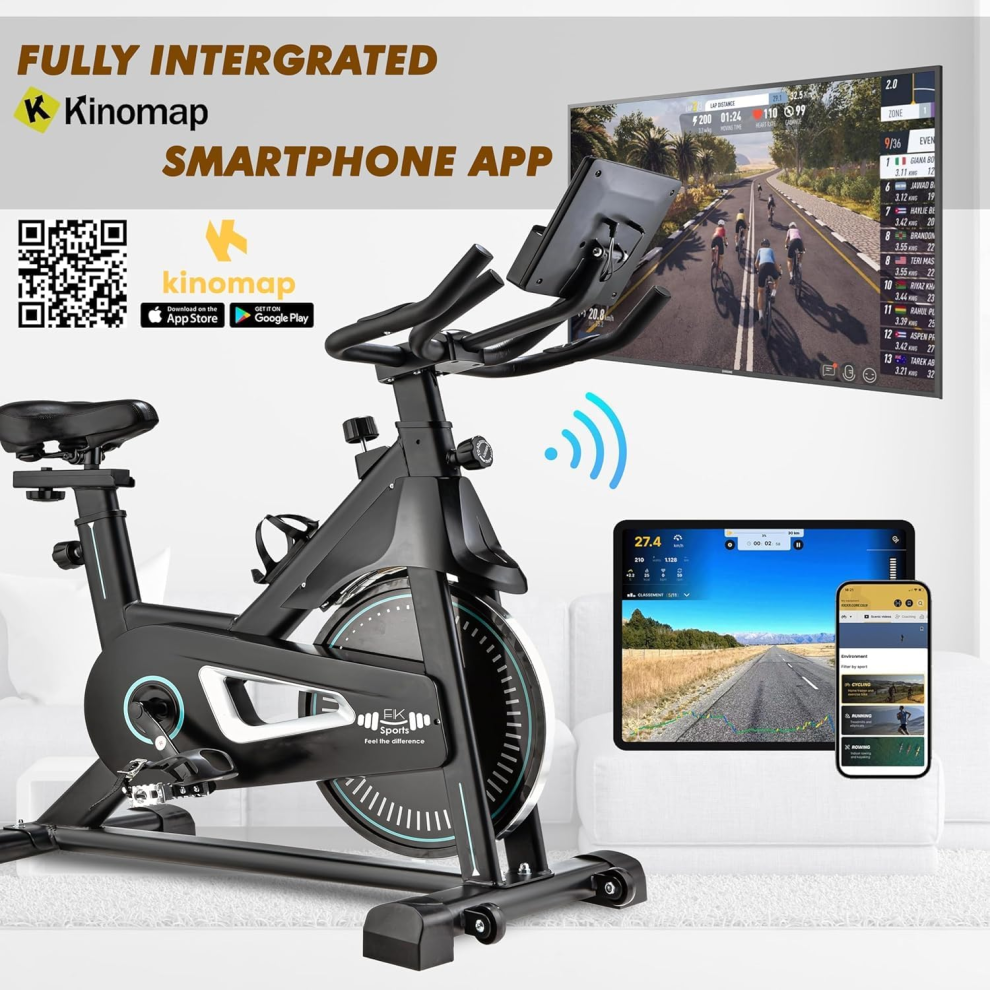 Exercise Bike APP Compatible, Indoor Cycling Spin Bike for Home Gym Use with ...
