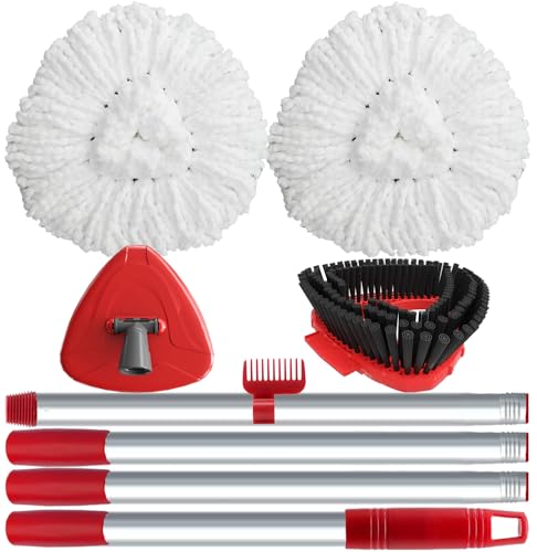 Spin Mop Head Replacement Compatibility with Vileda All Turbo System, 2 Microfiber Mop Refill+1 Handle+1Base+1 Cleaning Brush Comb, Shower Floor Scrubbing Brush Replace Head Deck Scrubber