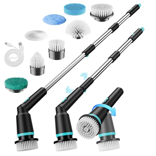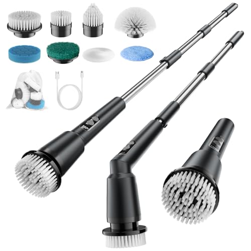 Electric Spin Scrubber,Electric Cleaning Brush with Long Handle & 10 Replaceable Brush Heads,IPX7 Waterproof Shower Power Scrubber for Kitchen,Car,Tile,Wall,Floor,Shower