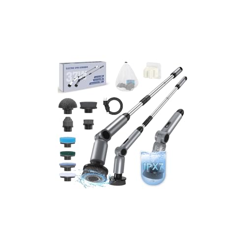 Upgraded Electric Cleaning Brush, IPX7 Full-body Waterproof Electric Spin Scrubber with 2 Speeds, Adjustable Long Handle & Replaceable Brushes, Cleaning Tool for Tub Car Bathroom Shower Floor Tile
