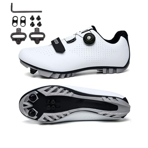 Mateju Cycling Shoes Mens Women, Road Bike and Mountain Bikes Shoes Compatible SPD Pedal Unisex Adult Spin Bike Shoes Road Bike Breathable for Outdoor White