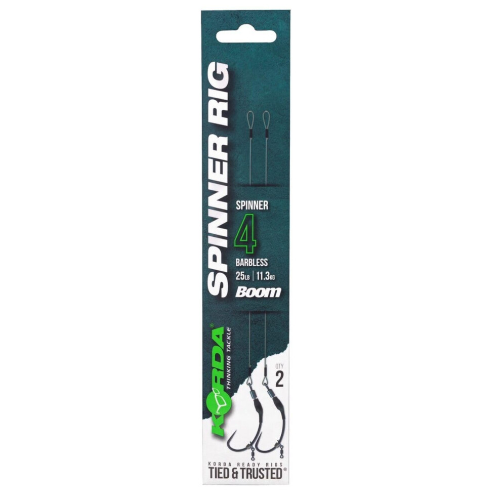 Korda Spinner Rig Spinner, Barbless Size 4, Durable Material, 5.5" Boom with New Spinner Hook and Pre-Crimped Swivel for Secure Connection, Also in