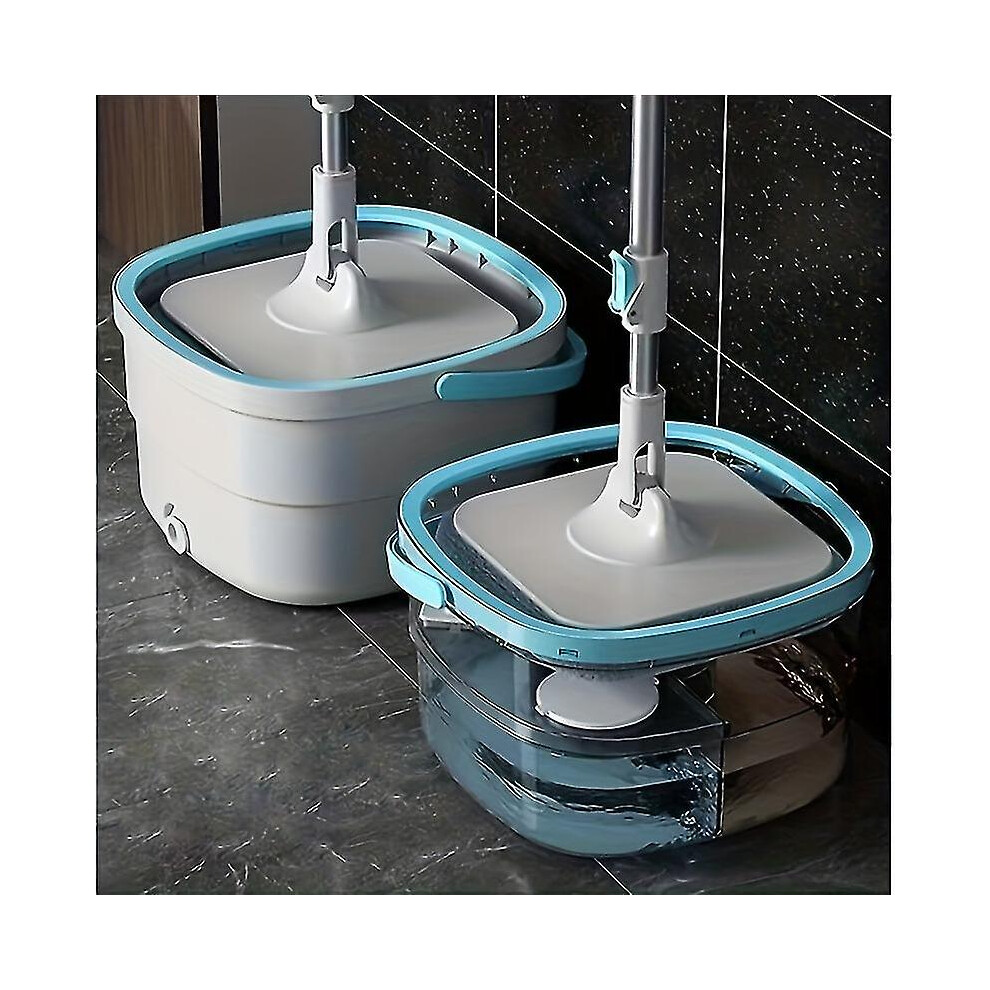 (Blue) 360 Degree Spinning Mop Bucket Home Cleaner Cleaning With 2 Microfiber Mop Heads