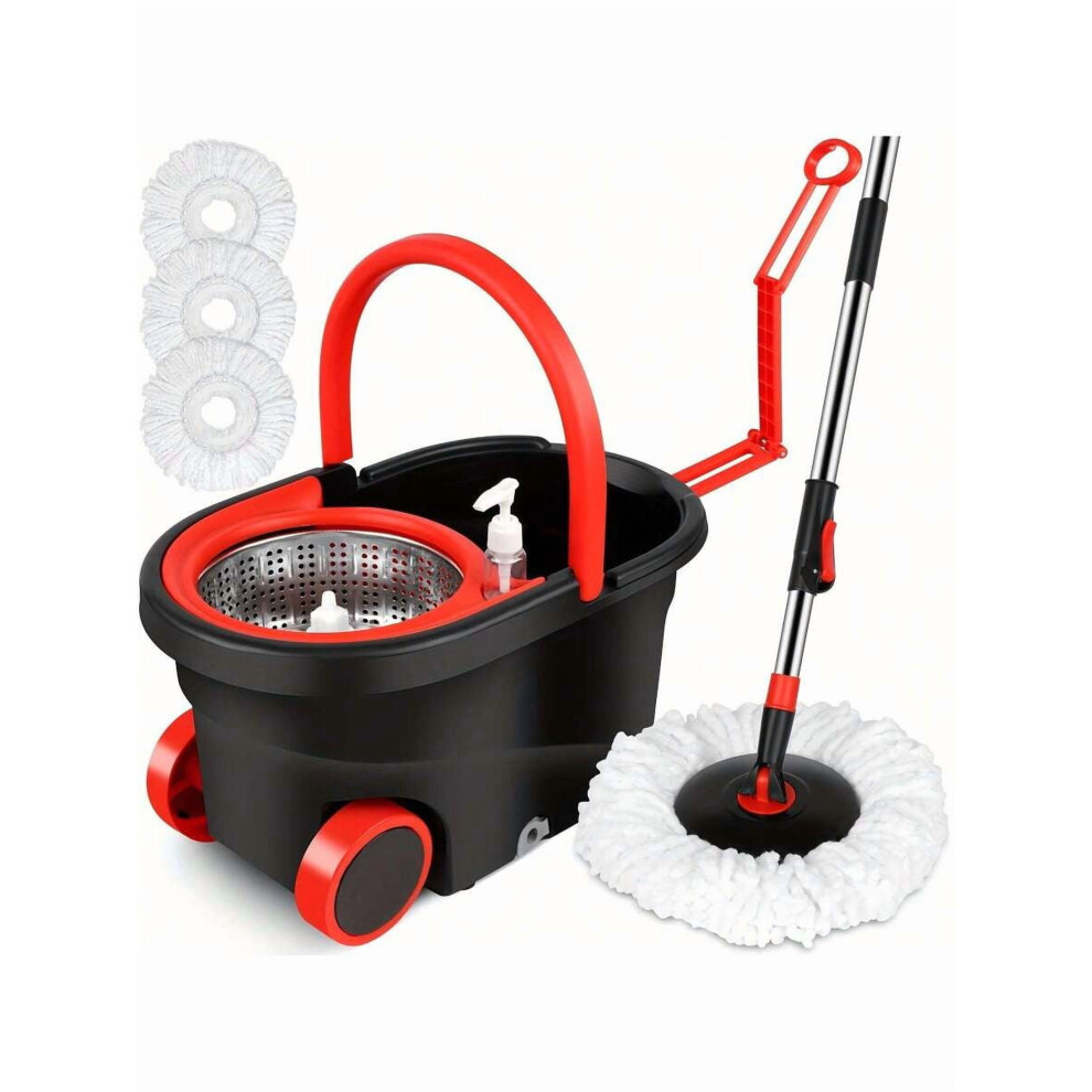 Wheeled Spin Mop & Bucket Set with 360 Spinning Mop, Handle, 3 Black Microfiber Heads â Compatible with Hard Surfaces