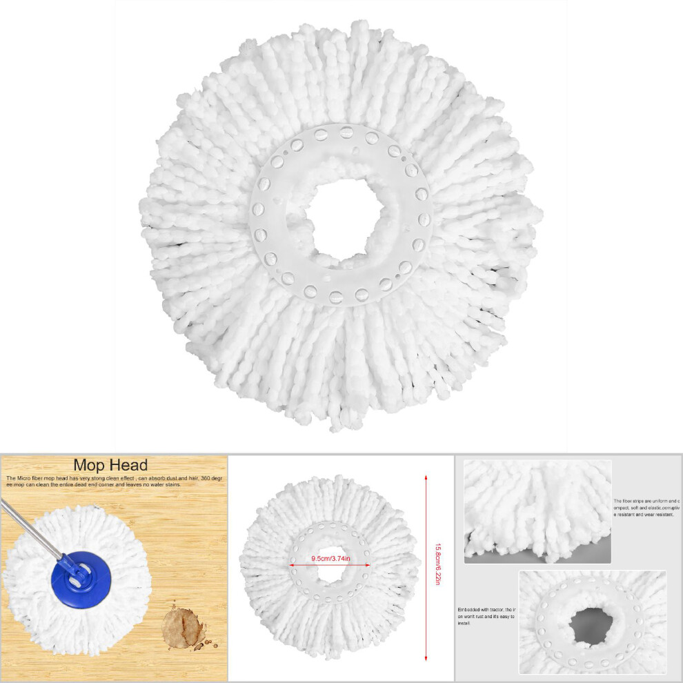Spinning Mop Head Refill, Microfiber Rotating 360 Mop Replacement Head, Universal Fit for Most Spin Mops, Machine Washable, White