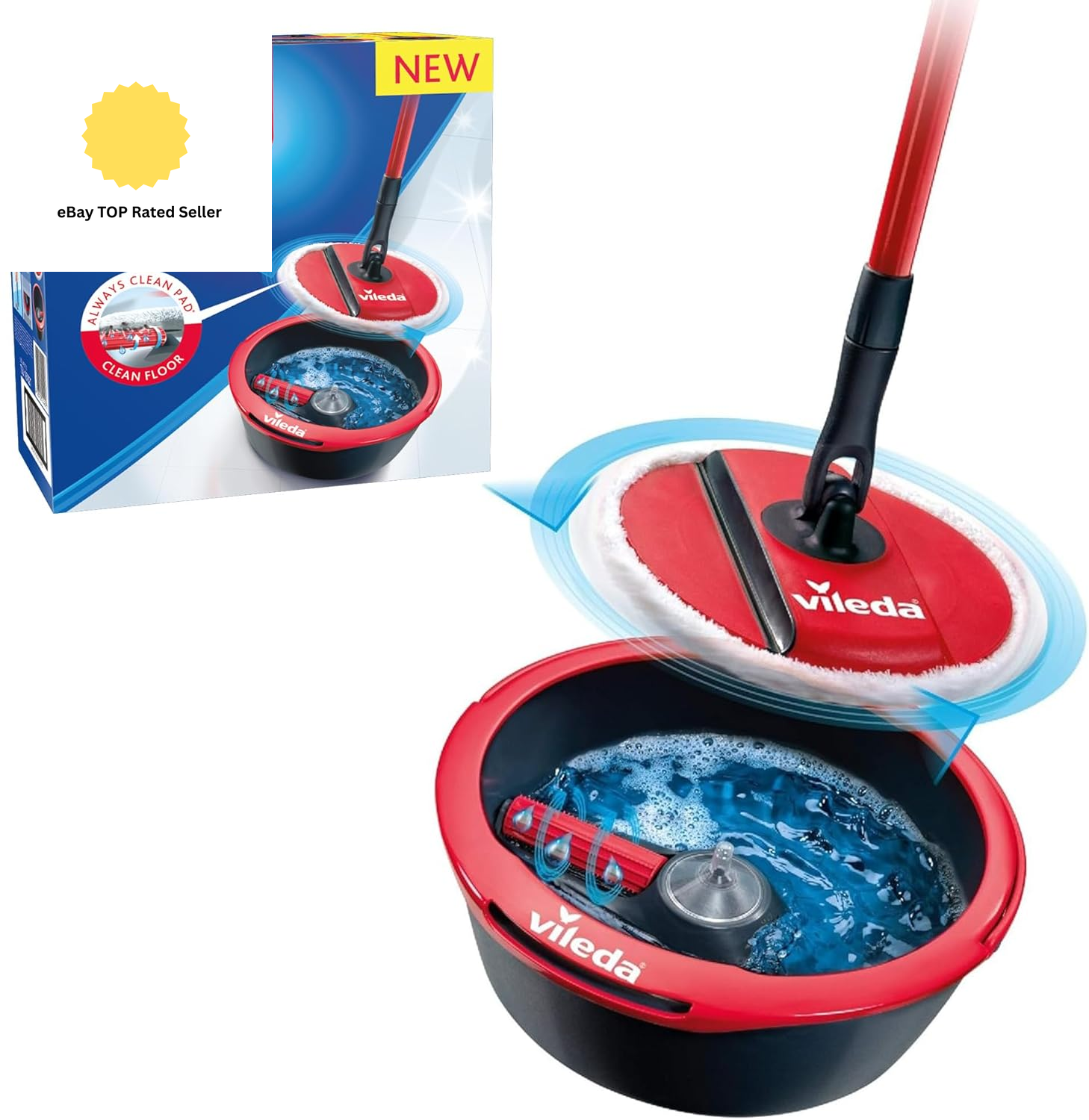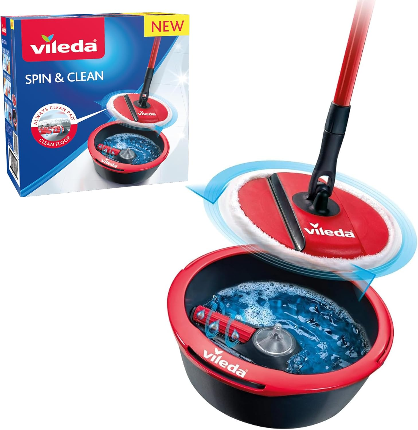 Vileda Spin & Clean System Mop and Bucket Set with 360? Spinning Mop for Cleaning Floors | Foldable Head to Clean Skirting Boards | Rotating Head for