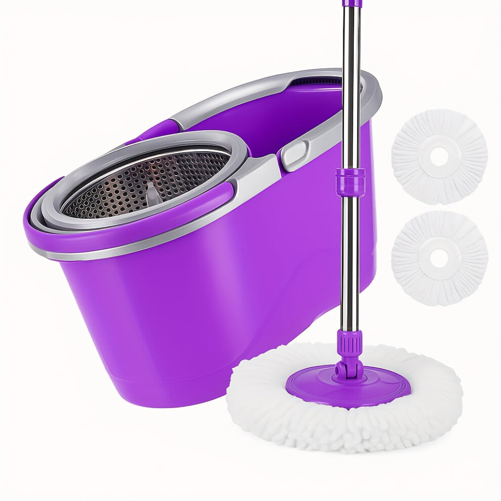 (Purple) 360 Degree Spinning Mop Bucket Home Cleaner Cleaning With 2 Microfiber Mop Heads