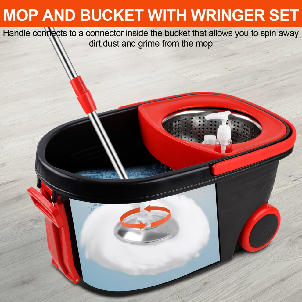 Spin Mop And Bucket Set, Mop And Bucket with Wringer Set, 360Spin Mop Kit with 2 Microfiber Mop Heads, Spinning Mop Bucket System for Floor Cleaning