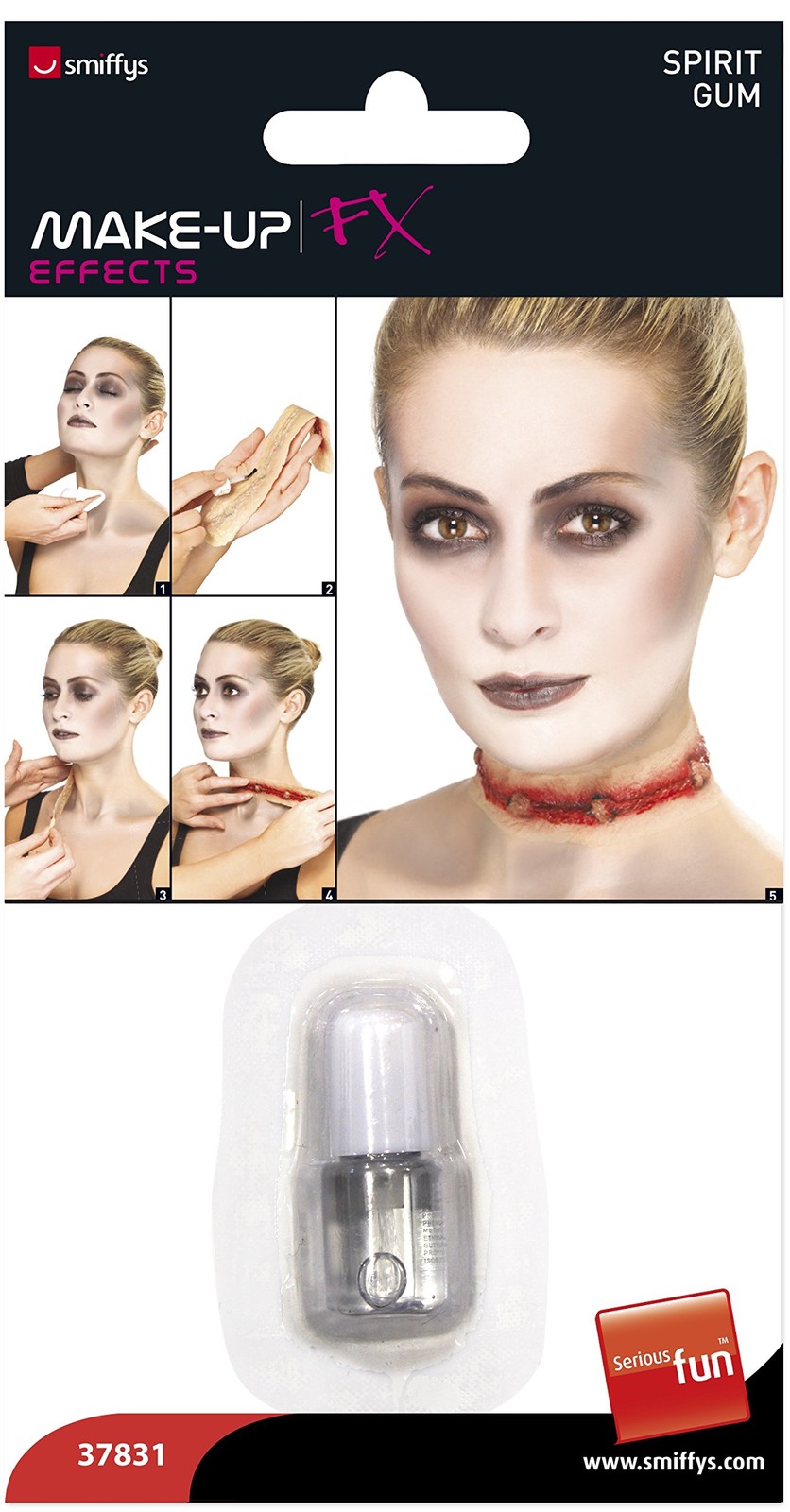 Smiffys Make-Up FX, Spirit Gum, Clear Clear, in Bottle, 3.3 grams, Cosmetics and Disguises Fancy Dress, Cosmetic Dress Up Cosmetics & Disguises.