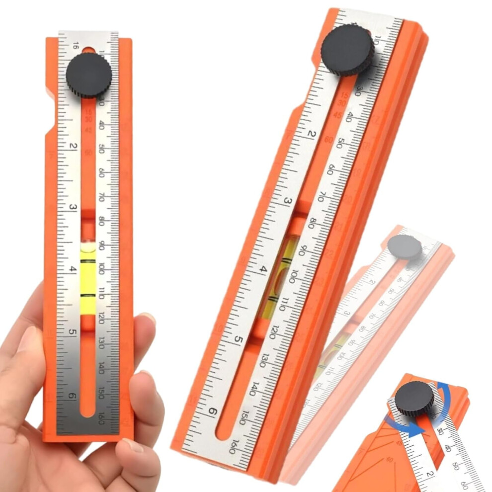 Adjustable Multi-Angle Woodworking Ruler â 6.6in Spirit Level Drill Positioning Tool for Drawer Doors Z