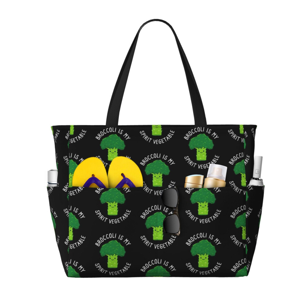(Broccoli Is My Spirit Vegetable - Funny Broccoli Lovers Gift_4144) Beach Bag for Women Large Capacity Waterproof Sandproof Tote with 7 Pockets Pool Z