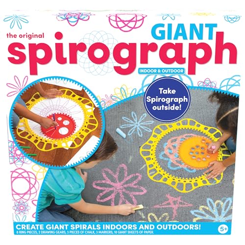 Spirograph Giant Set - Create Giant Spiral Designs Indoors and Outdoors - 26 Piece Set Including Gears, Chalk, Markers & Giant Paper - Creative Arts & Crafts Activity for Ages 5+