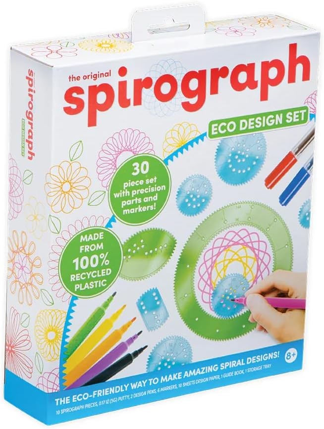 Spirograph Design Set Eco | Made from 100% Recycled Plastics | Create Endless Designs | 30 Pieces Set Including Precision Parts, Pens & Spiro-Putty | Creative Arts & Crafts Activity | for Ages 8+