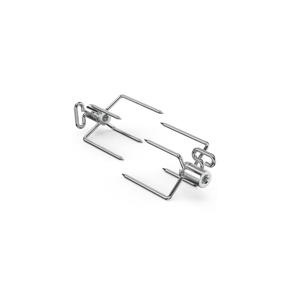 Stainless Steel Rotisserie Fork and Spit Rod for BBQ Grill, Electric Oven, Easy Clean Meat Roasting