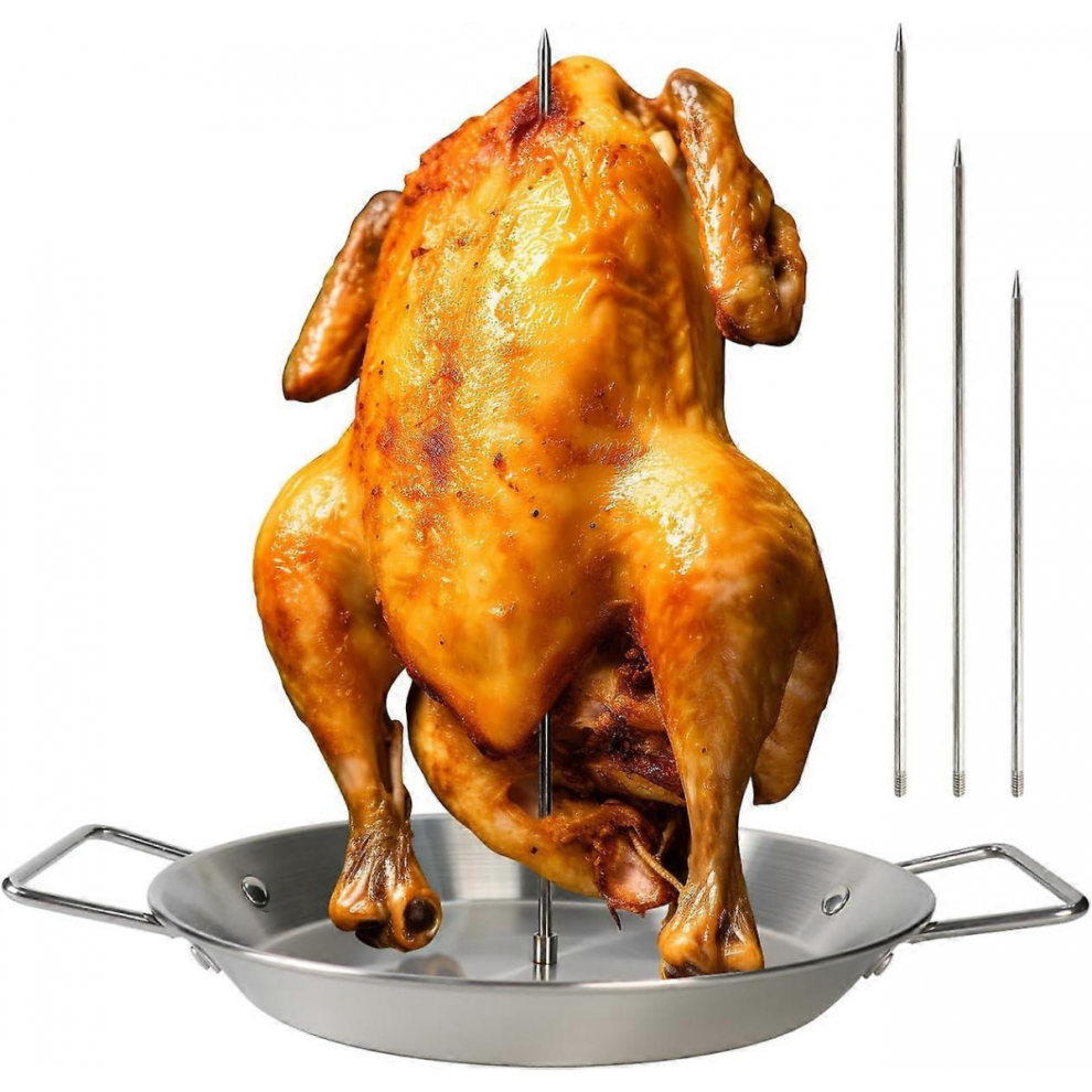 Vertical Kebab Skewer, BBQ Detachable Spike Meat Spit Stainless Steel Roaster Stand with Drip Tray for Broiler, Medium Chicken, Steak, Kebab, Shawarma