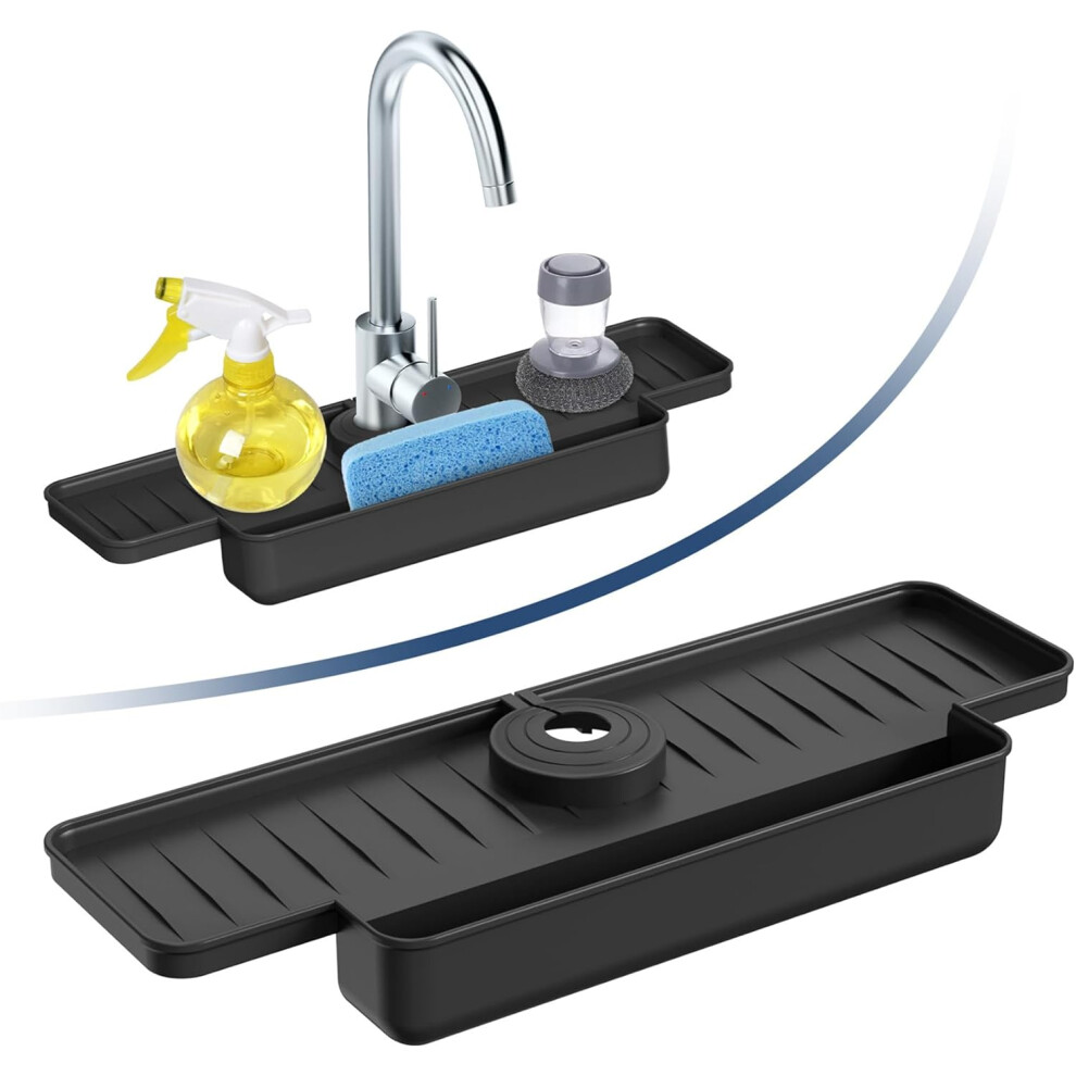 Silicone Faucet Splash Guards Kitchen Sink Splash Guards Upgraded Faucet Trap Tray - 15.75 x 5.5 x 2 inches - For Kitchen, Bathroom (Black)