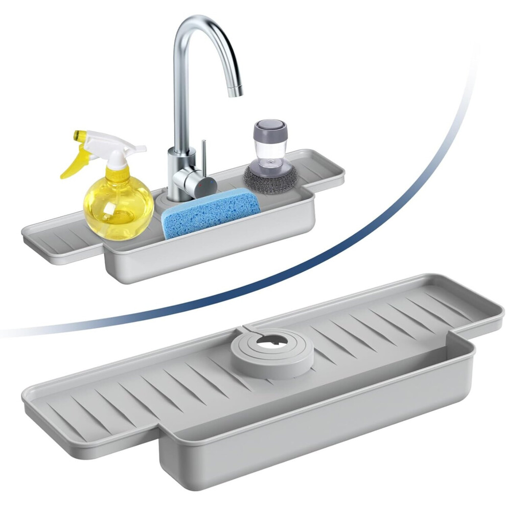 Silicone Faucet Splash Guards Kitchen Sink Splash Guards Upgraded Faucet Trap Tray - 15.75 x 5.5 x 2 inches - For Kitchen, Bathroom (Gray)