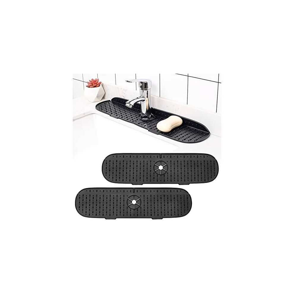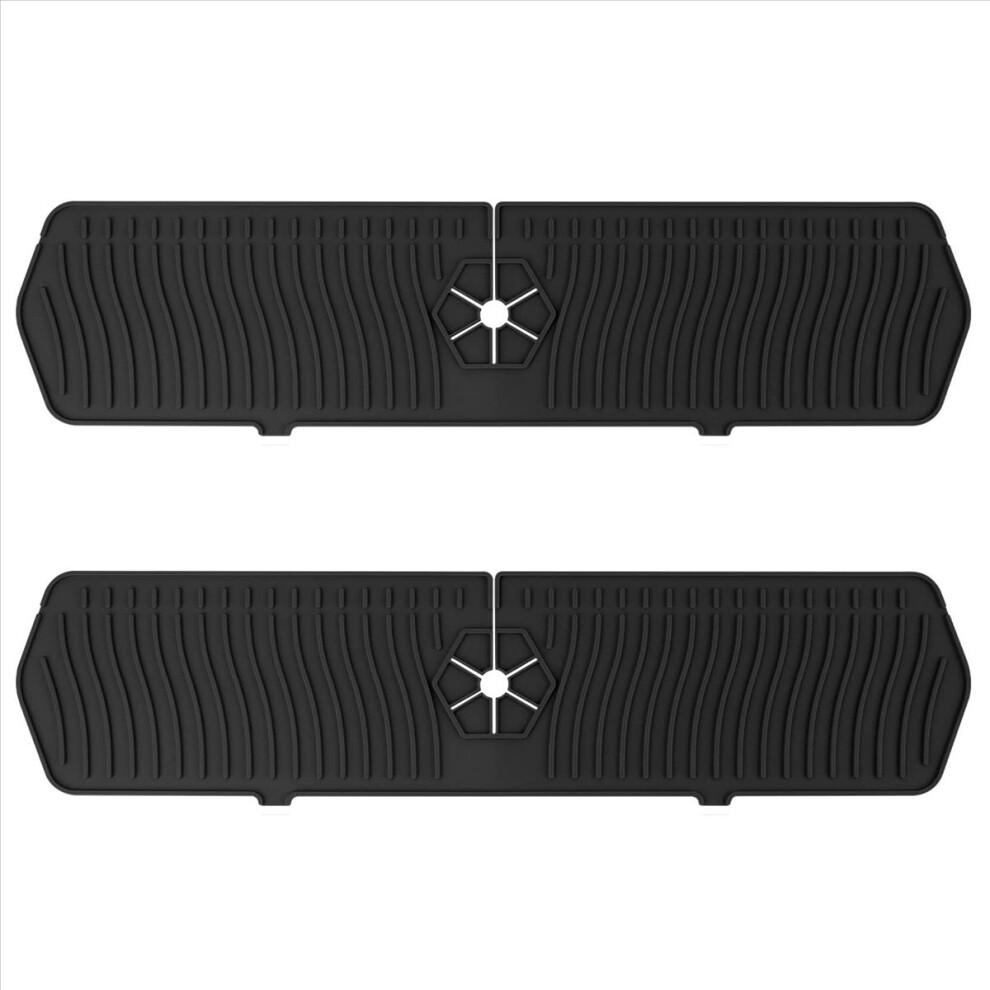 2 Pieces Large Silicone Kitchen Sink Splash Guards, 20.47 Inch ¡à 5.5 Inch Silicone Faucet Mat for Kitchen, Bathroom, Sink Protector (Black)