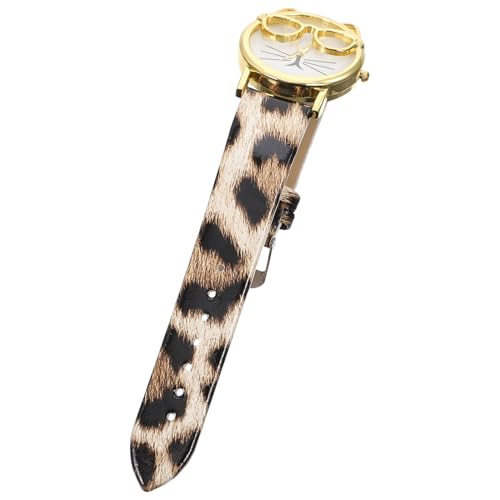 Toyvian Pu Leather Watch Quartz Wrist Watch Cartoon Cat Beard Pattern Girls with Alloy Case Plastic Lenses Fashionable Lovely Design Water Splash Resistant Easy to Read Time for Students