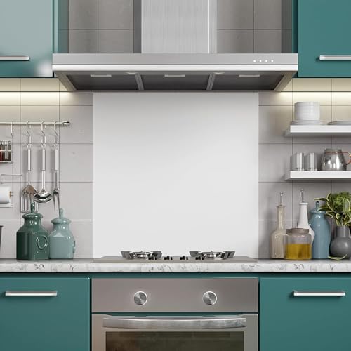 BELOFAY 6mm Tempered Glass Splashbacks for Cookers, Toughened Glass Heat Resistant Splashback for Kitchen Oven (White Glass, 60x70 cm)