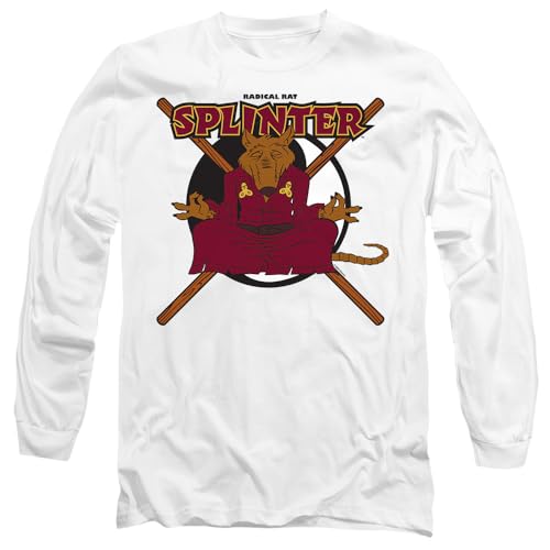 Teenage Mutant Ninja Turtles TMNT Radical Rat Splinter Mens Long Sleeve T Shirt, White, S