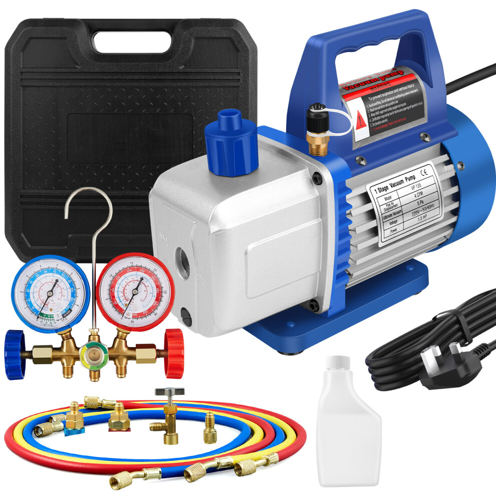 AC Vacuum Pump and Gauge Set,4 CFM Vacuum Pump Kit for AUTO/Mini Split System for R134a R410a R12 Refrigerants, with R134a Quick Couplers and Can Tap