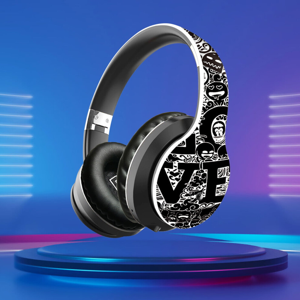 Jacenvly 2024 New Earphones Graffiti Headworn Bluetooth Earphones 5.0 Foldable and Retractable Sport Bluetooth Earphones Noise Cancelling Headphones
