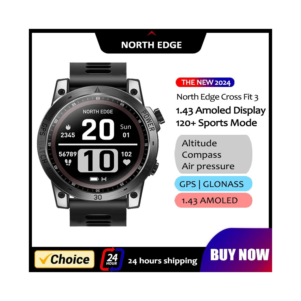 NORTH EDGE 2025 New GPS Watches Men Sport Smart Watch HD AMOLED Display 50M ATM Altimeter Barometer Compass Smartwatch for Men