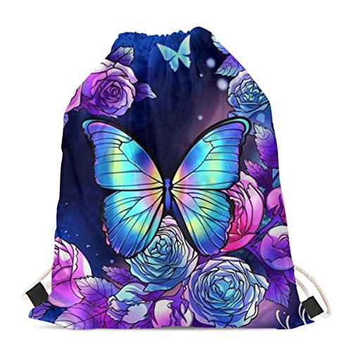 HELLHERO Butterfly Drawstring Bags Sports Gym String Backpacks Cinch Sackpack Gymsac PE Daypack Party Favor Bag for Kids Women Gifts Shopping Travel Work Camping Beach Swiming