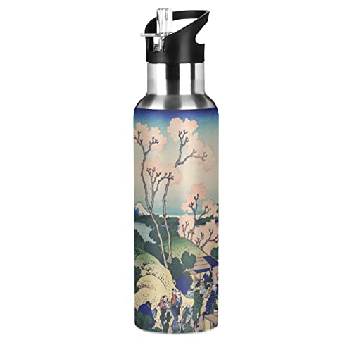 Mnsruu Japanese Sakura Cherry Blossom Sports Water Bottles with Straw Insulated Stainless Steel Vacuum Flask Keeps Hot and Cold for Kids Adult Travel