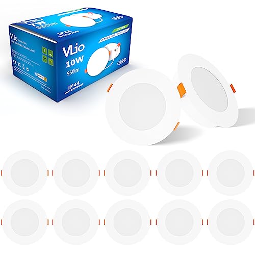 Vlio LED Recessed Ceiling Lights Ultra Slim 5W LED Downlights for Ceiling, 3000K Warm White, 460LM, 75mm Ceiling Hole, IP44 Round Spotlights for Bathroom Kitchen Living Room, 10 Pack