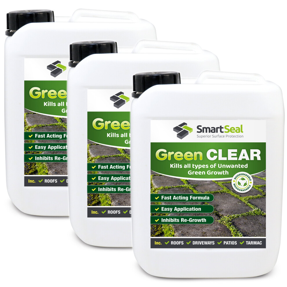 (3 x 5L) SmartSeal Green Clear - Spray and Leave Patio Cleaner - Patio Mould Remover & Green Algae Remover for Roofs & Decking - Covers up to 375m²