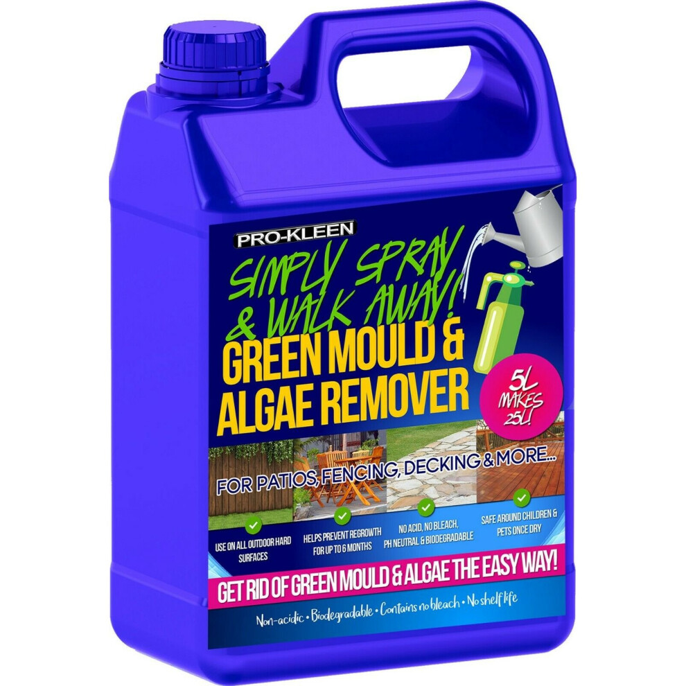 Pro-Kleen MY16 Patio Cleaner Simply Spray and Walk Away Green Mould and Algae Killer for Patios, Fencing and Decking 5 Litre Concentrate (Makes 25 litres)