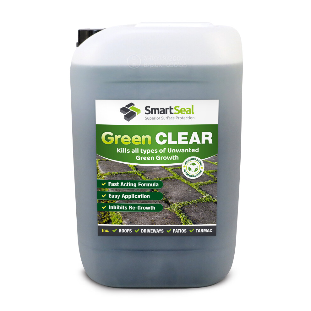 (25L) SmartSeal Green Clear - Spray and Leave Patio Cleaner - Patio Mould Remover & Green Algae Remover for Roofs & Decking - Covers up to 625m²