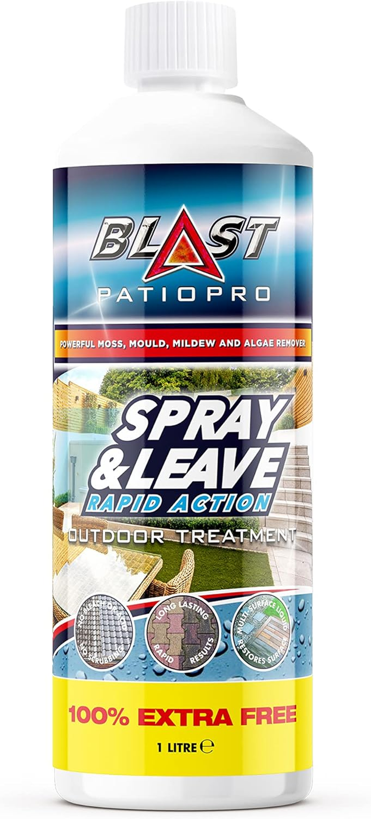 Patio Blast Cleaner Fluid – High-Efficacy Algae, Moss, & Mould Remover for Garden, Paths, Drives, & Decking – Long-Lasting Spray & Leave Formula, 5L