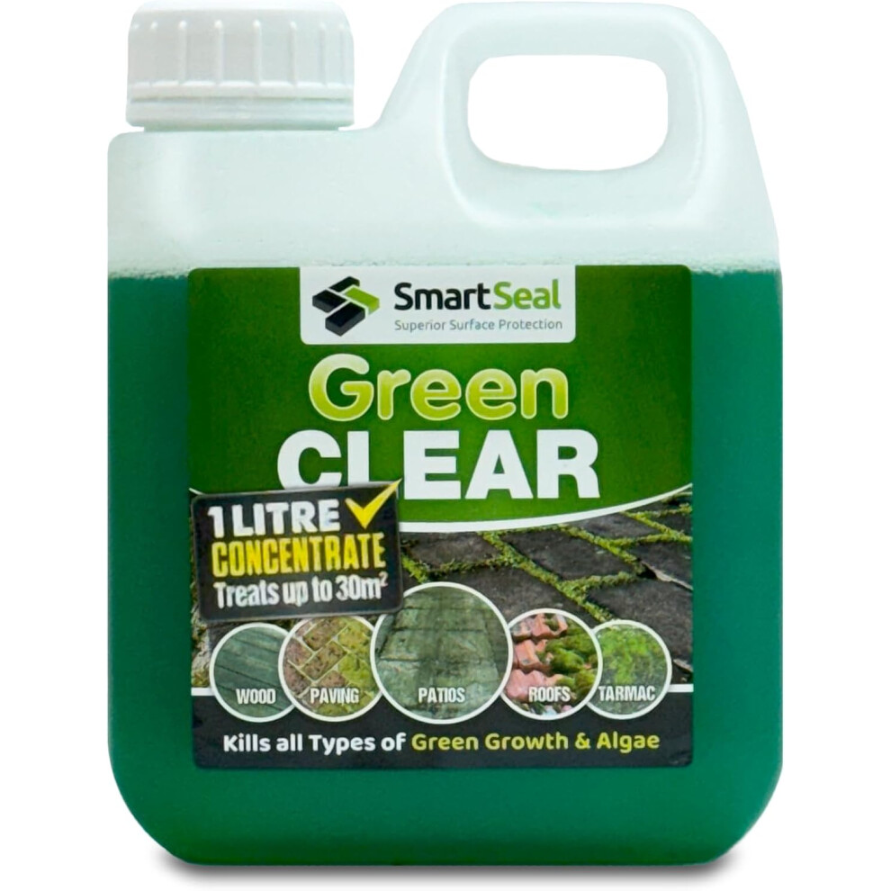 (1L) SmartSeal Green Clear - Spray and Leave Patio Cleaner - Patio Mould Remover & Green Algae Remover for Roofs & Decking - Covers up to 30m²