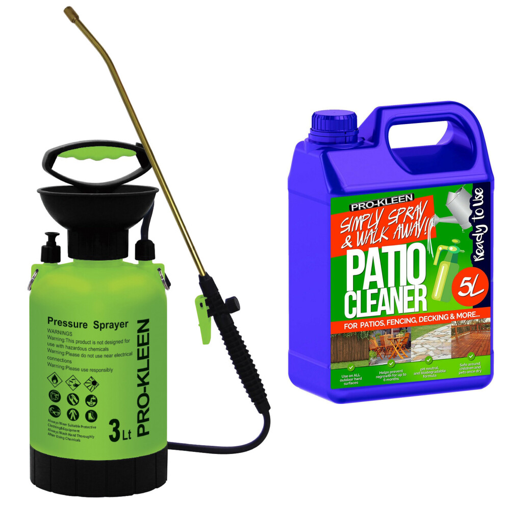 (3L, ProKleen Ready to Use Simply Spray & Walk Away Patio Cleaner 1 x 5L ) Garden Sprayer Pump Action Patio Cleaner Kits