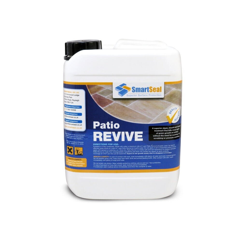 SmartSeal Green Clear - 5L - Spray and Leave Patio Cleaner & Roof Cleaner - Patio Mould Remover & Green Algae Remover for Roofs, Tarmac, Render, Decking, Brickwork & Concrete - Covers up to 125m²